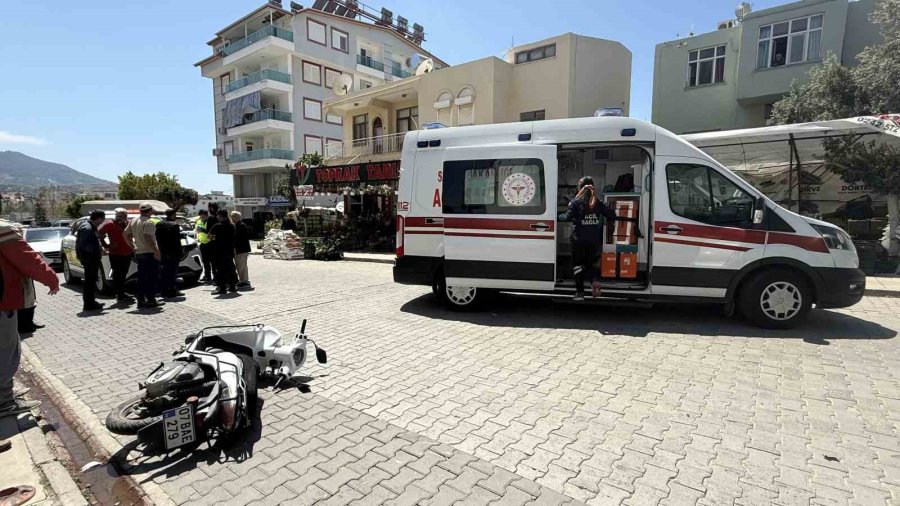 Kaza, saat 13.10 sıralarında İstiklal Mahallesi Rasih Kaplan Caddesi'nde meydana geldi. Edinilen bilgiye göre, Gazipaşa Toptancı Hali istikametinden çarşı merkezine seyir halinde olan F.D. idaresindeki 07 BAE 279 plakalı motosiklet, ara sokaktan Rasih Kaplan Caddesi'ne çıkan K.Y.'nin kullandığı 07 ASK 602 plakalı hafif ticari araçla çarpıştı. Kazada, devrilerek parke zemine savrulan motosikletteki C.D. isimli yolcu yaralandı. Çevredeki vatandaşların 112 Acil Çağrı Merkezine yaptığı ihbarın ardından olay yerine polis ve sağlık ekipleri sevk edildi. İlk müdahalesi olay yerinde yapılan yaralı, ambulansla Gazipaşa Devlet Hastanesine kaldırılarak tedavi altına alındı.