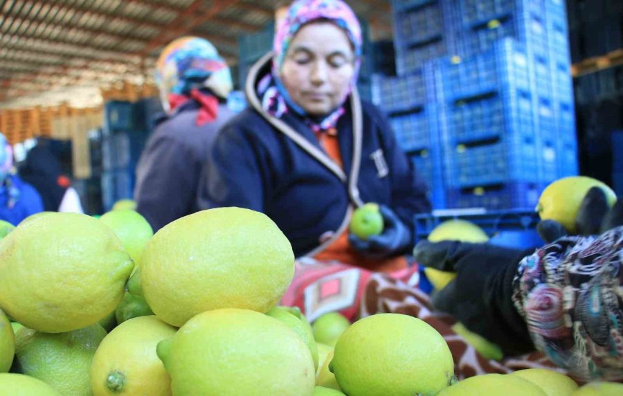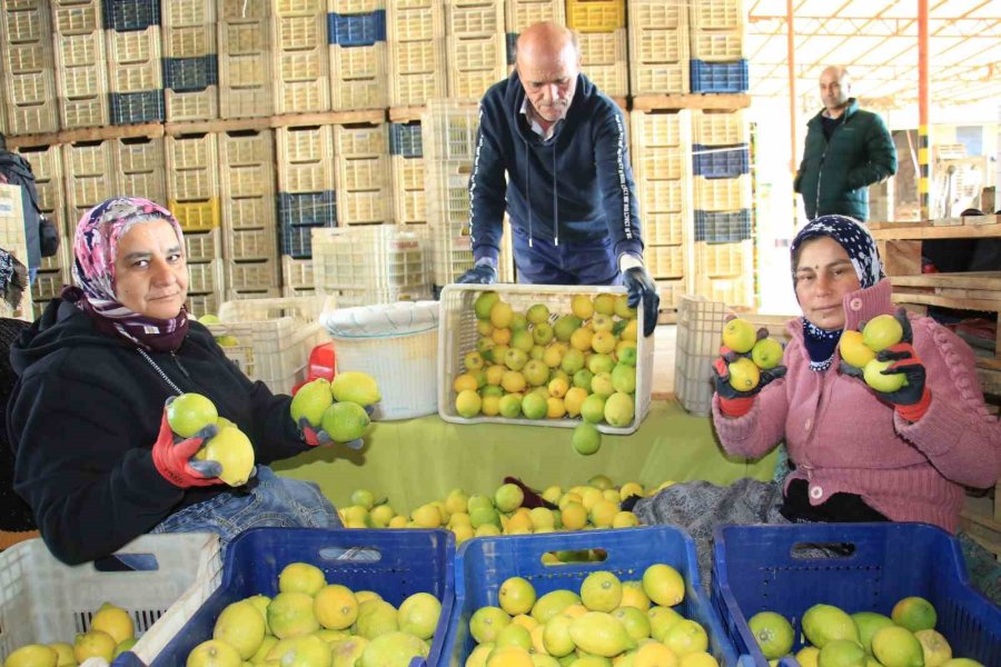 Hasattan sonra ayrıştırma işlemlerini yaptıklarını belirten kadın işçilerden Zeynep Dinç, daha sonra depolara gönderdiklerini söyledi. Bölgenin tescilli ürünü Lamas dikenli limonunu boy boy ayırdıklarına dikkat çeken Ayşe Demir ise kendilerinin de burada ekmek paralarını kazandıklarını kaydetti.