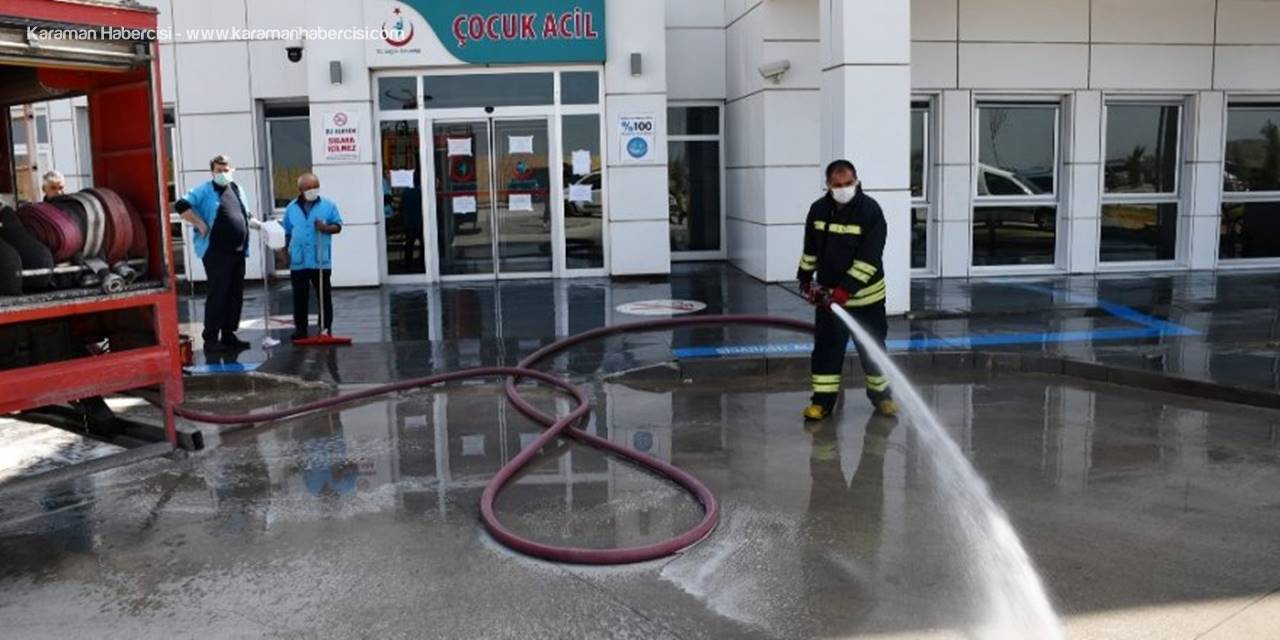 Ermenek Devlet Hastanesi Korona Virüsüne Karşı Dezenfekte Edildi