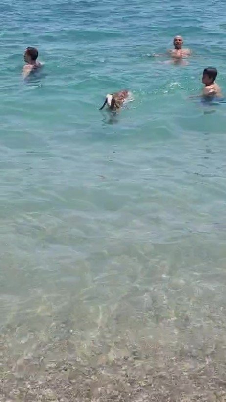 Antalya'da havaların ısınması ile birlikte Konyaaltı Sahili ilginç görüntülere sahne oluyor. İlk başta kurbanlık olduğu ve kaçtığı düşünülen oğlağın sahipli olduğu ve sahibinin peşinden denize girdiği anlaşıldı. Vatandaşların şaşkın bakışları arasında denize giren ve izleyenleri tebessüm ettiren o anlar cep telefonu kamerasına yansıdı.