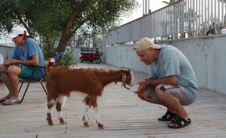 Antalya'da yaz aylarının gelmesi ile birlikte hava sıcaklığı neminde etkisi ile mevsim normallerinin üzerinde hissedilmeye başladı. Artan hava sıcaklığı nedeniyle vatandaşlar ve turistler serinlemek için denize girmeyi tercih ederken Antalya'nın dünyaca ünlü Konyaaltı Sahili zaman zaman ilginç görüntülere sahne oluyor. Kurban Bayramı'nın son gününde sahibi ile Konyaaltı Sahiline gelen ve bir an olsun peşinden ayrılmadığı sahibi ile birlikte denize giren oğlak sahilde bulunan vatandaşların ilgi odağı oldu.