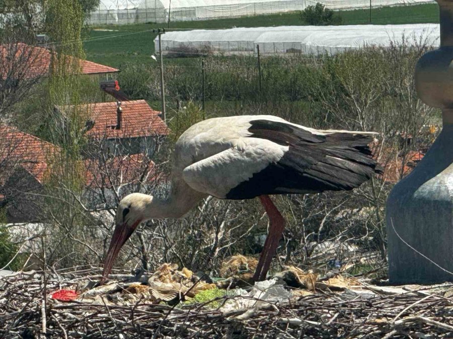 Antalya'nın Elmalı ilçesine nisan ayında gelmeye başlayan leylekler, daha önce yaptıkları yuvalarına konuyor.