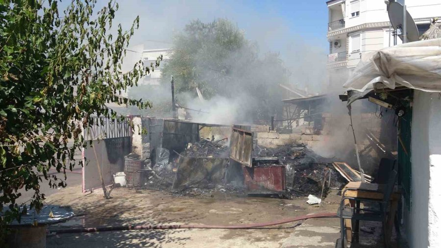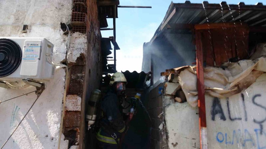 Antalya'da hurda malzemelerden çıktığı belirtilen yangın kısa sürede büyüyerek bitişik 2 gecekonduya sıçradı. Can kaybı ya da yaralanma olmayan yangında 2 gecekondu kullanılamaz hale gelirken, mahalleli sokağa döküldü.