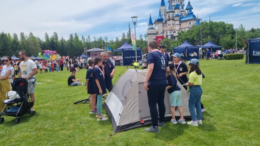 Tepebaşı Belediyesi tarafından gerçekleştirilen İklim İzcileri programına katılan çocuklar izciliği ve doğayı öğrenmeye devam ediyor.
