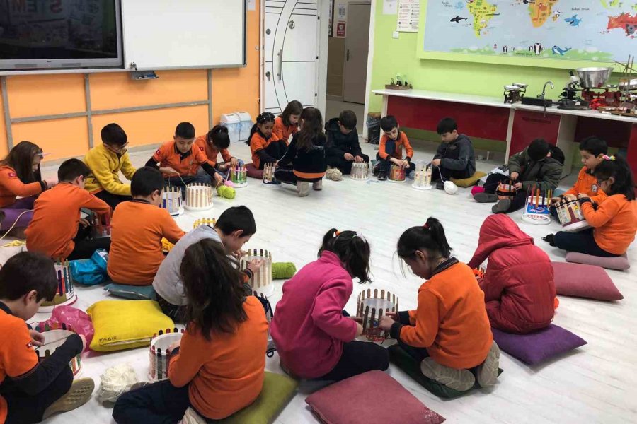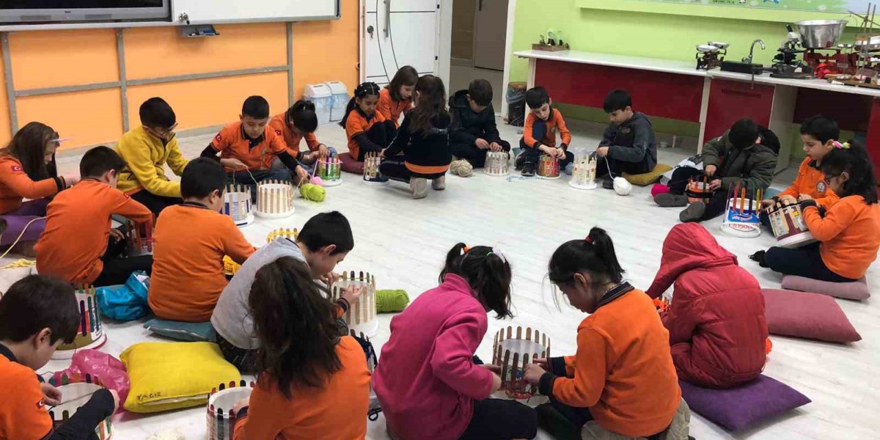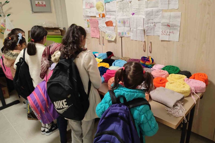 Ankara'nın Polatlı ilçesinde Şehit Abdullah Erkmen İlkokulu 2/C sınıfı öğrencileri, büyük bir dayanışma örneği göstererek Karaman Gençlik ve Spor İl Müdürlüğüne bağlı yurtlarda kalan depremzede çocuklar için yoğurt kovalarından atkı ördü.