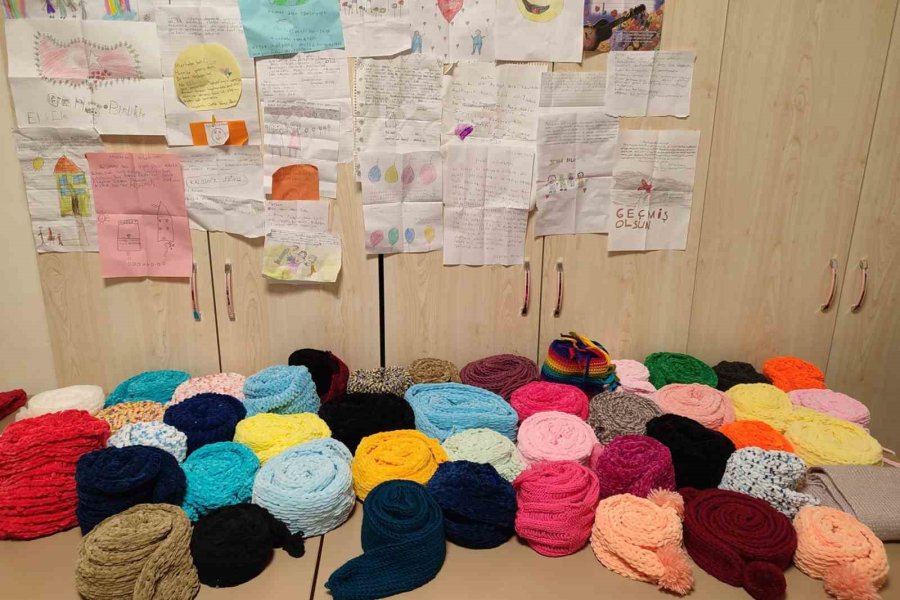 Karaman'da Nefise Sultan Kız Yurduna ulaşan atkı ve mektuplar ise, yurt yetkilileri tarafından düzenlenen organizasyon ile depremzede çocuklara dağıtıldı.