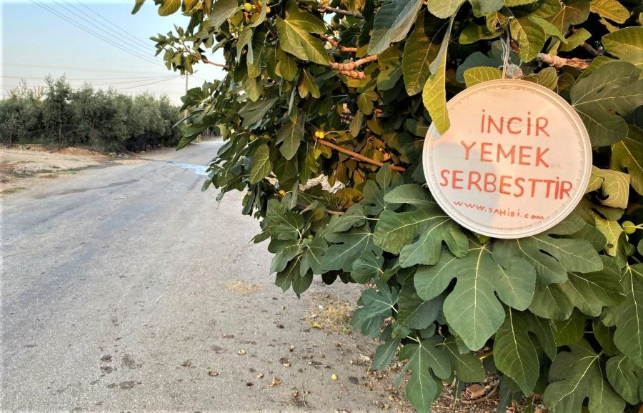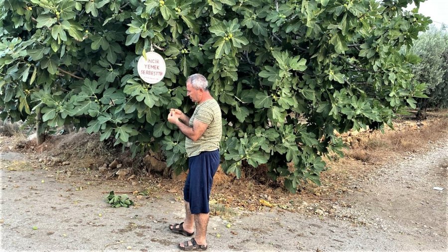 Antalya'nın Aksu ilçesinde yaşayan emekli okul müdürü Erol Aytar, bahçesinde yetişen incirlerden herkes yesin diye ağaca "İncir yemek serbesttir" yazılı tabela astı.