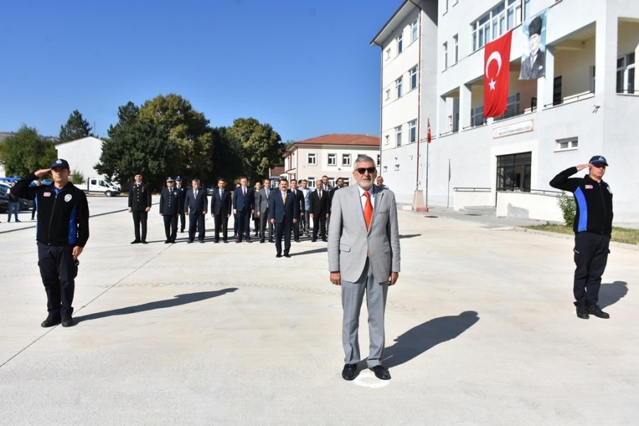İnönü İlçesinde düzenlenen tören programı saygı duruşunda bulunulması ve İstiklal Marşı'nın okunması ile başlarken İnönü Kaymakamı Tolga Ustaoğlu...