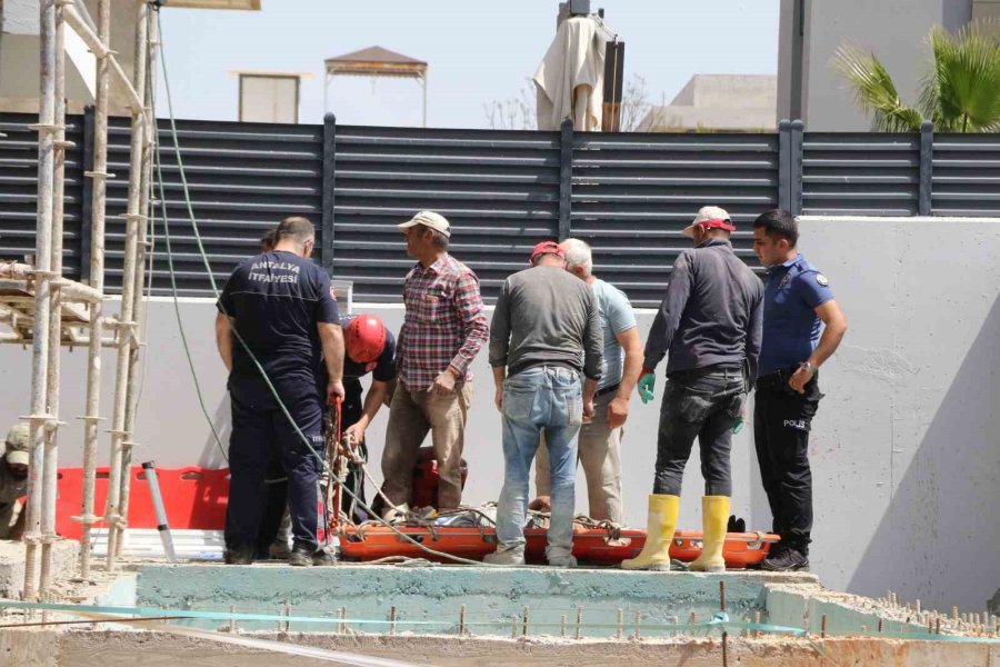 Antalya'da villa inşaatı yapan işçi, çimentoları temizlediği sırada dengesini kaybedip 3 metre yükseklikten jeneratör odasına düştü.