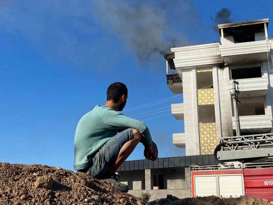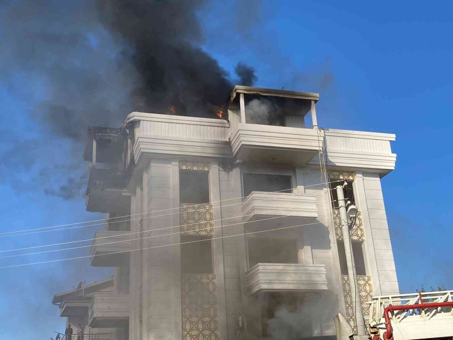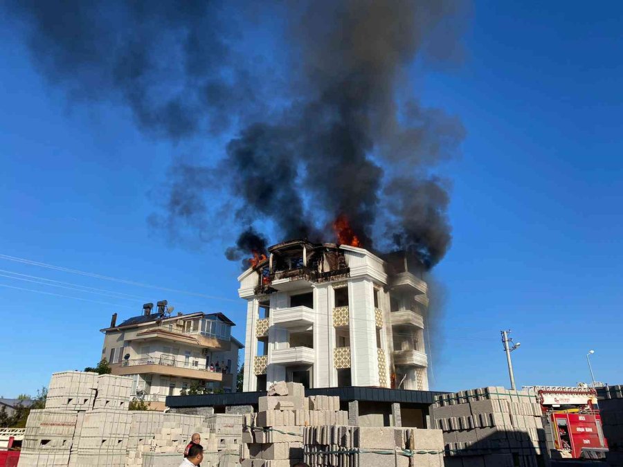 Antalya'nın Serik ilçesinde 5 katlı bir inşaatta kaynak çalışması sırasında çıkan yangında alevlere çatıda yakalanan işçiler büyük korku yaşadı. İşçiler çalışma arkadaşlarının yardımıyla kurtarıldı.