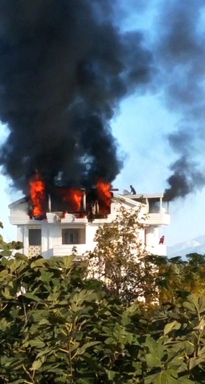 Yangın, Serik ilçesine bağlı Belek turizm merkezinde sabah saatlerinde 5 katı bir inşaatın çatı katında meydana geldi. Alevlerin çatıyı sardığını gören çevredeki vatandaşların ihbarı üzerine olay yerine itfaiye, polis ve tedbir amaçlı sağlık ekipleri sevk edildi. Yaklaşık 1 saat süren çalışmalar sonucunda yangın söndürülürken, alevlere çatıda yakalanan işçiler arkadaşlarının yardımıyla kurtuldu. Cep telefonuyla çekilen görüntülerde çatıda işçilerin alevlerin hemen yanında koşuşturmaları yer alırken, binada maddi hasar oluştu. Yangının işçiler çatıda kaynak yaptığı esnada kıvılcımların strafor malzemesini tutuşturmasından kaynaklandığı öğrenildi.