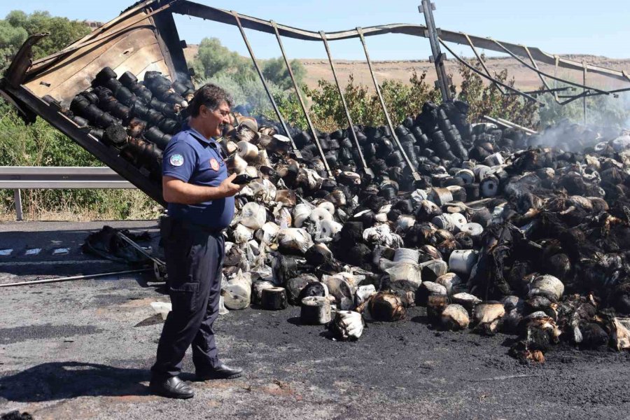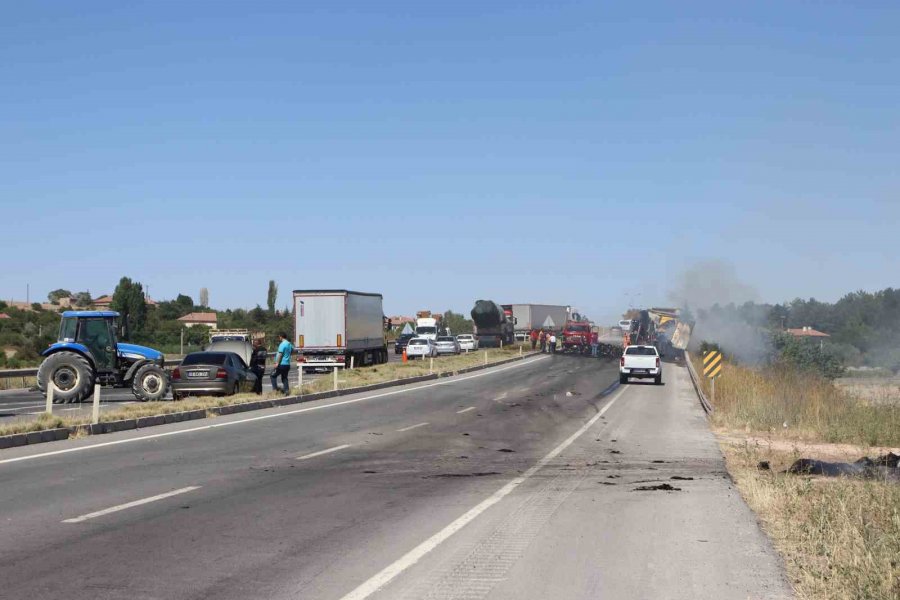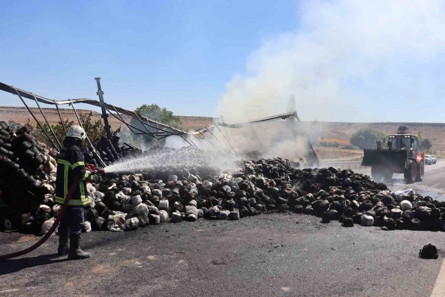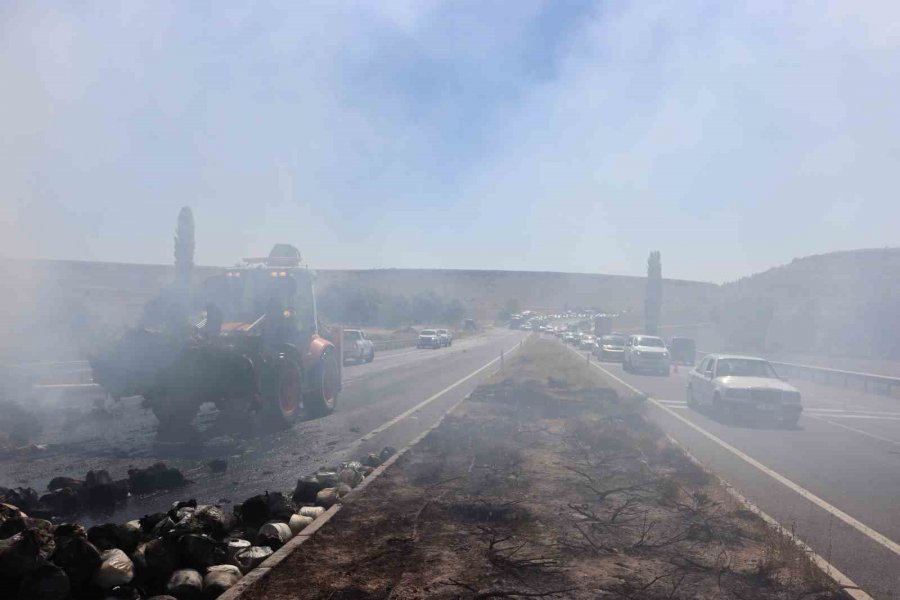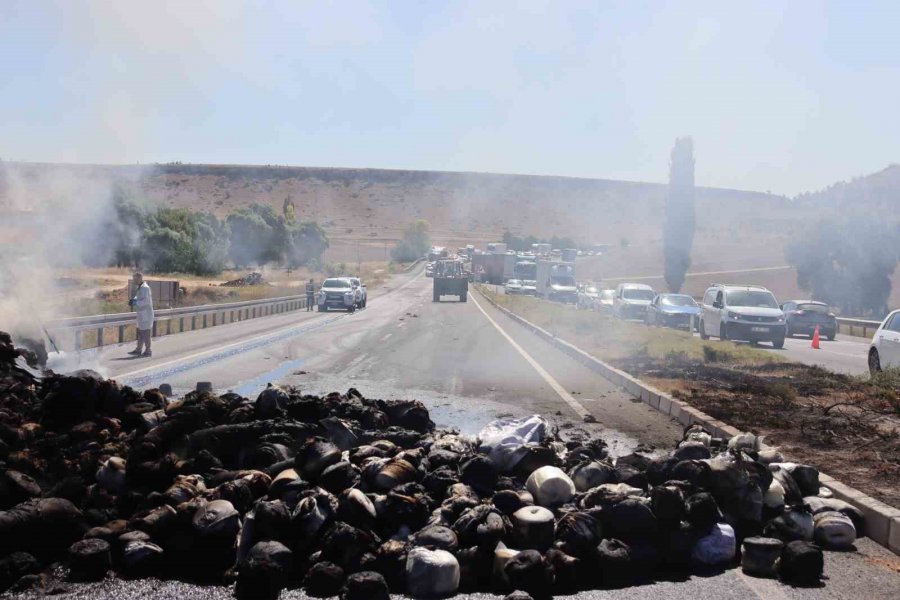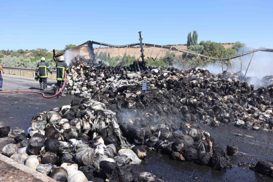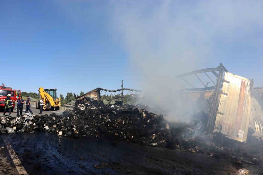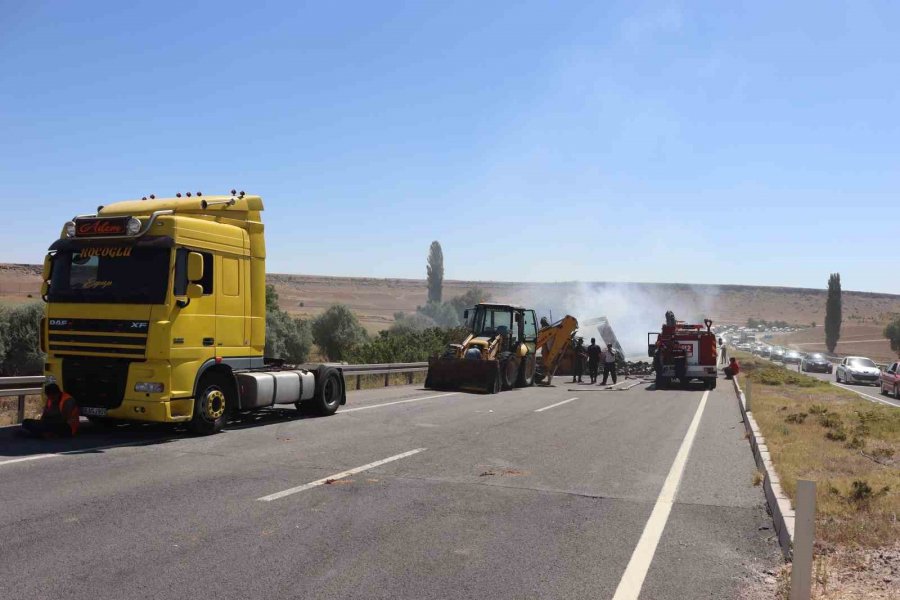 İplik Yüklü Tır Cayır Cayır Yandı, Kilometrelerce Araç Kuyruğu Oldu