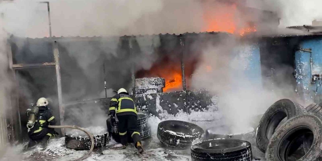 Aksaray’da Lastikçi Dükkanı Alev Alev Yandı