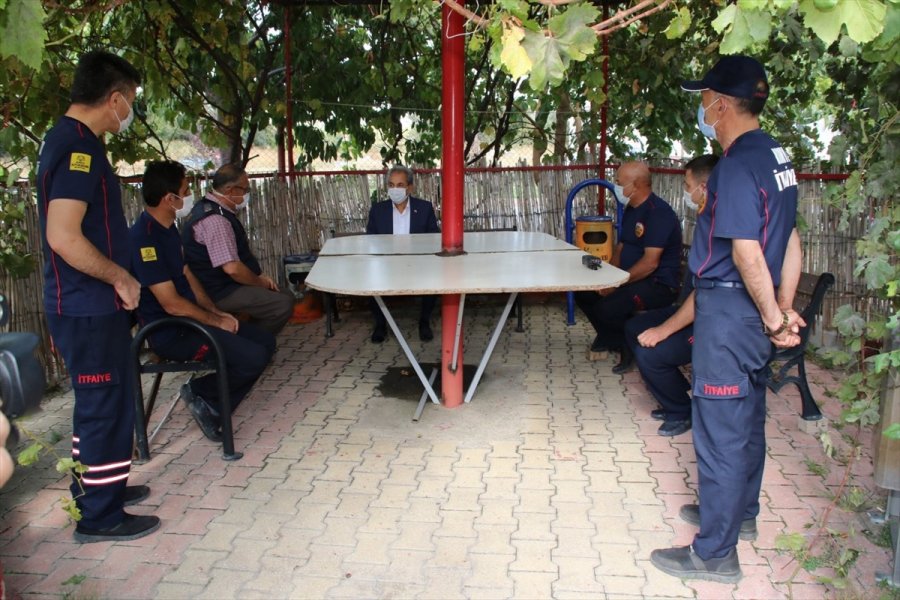 Başkan Akkaya, ziyaretinin sonunda itfaiye personeli ile hatıra fotoğrafı çektirdi.
