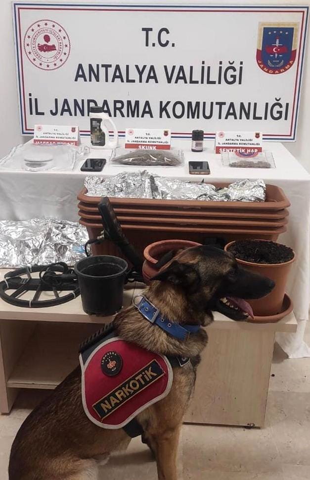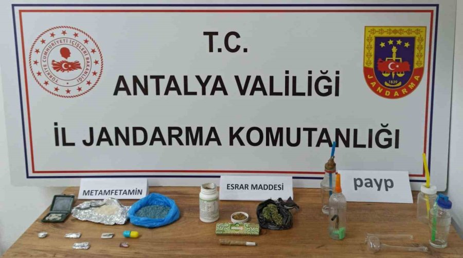 Antalya'da jandarma ekipleri tarafından gerçekleştirilen "Huzurlu Sokaklar ve Narkotik Suçları" uygulaması çerçevesinde bin 115 gram kubar esrar, 426 gram metamfetamin, 75 gram skunk ve 103 adet sentetik uyuşturucu hap ele geçirildi.