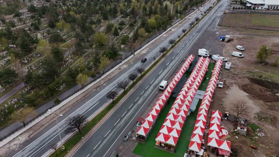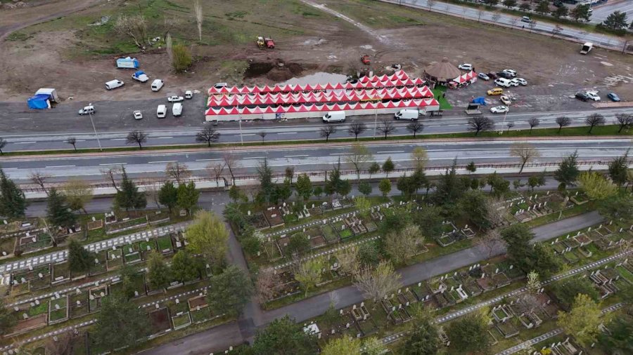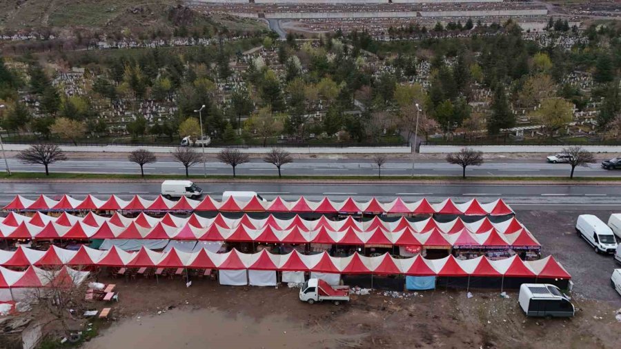 Kayseri'de şehir mezarlığının karşısında açılan ve sürekli müzik yayınlarının yapıldığı Hatay-Gaziantep Gastronomi Yemek Şenliği'ne esnaflar...
