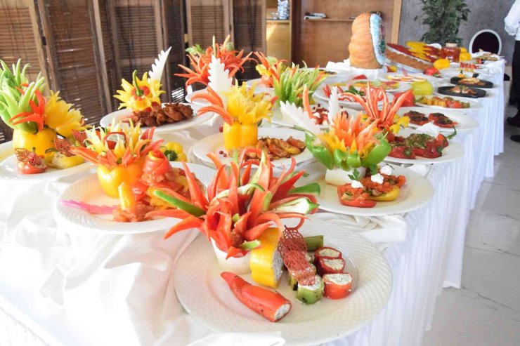 Kaliforniya biberinden 35 çeşit yemek yaptıklarını belirten Otel Mutfak Şefi Halil Gökmen, "Ülkemizin güzel ürünlerini Anadolu'dan çıkan ürünlerimizi misafirlerimize sunuyoruz. Henüz ülkemizde yeni olan Kaliforniya biberinden yemek çalışmaları yaptık. Bu biber Aksu bölgesinde yetişiyor. Eskiden biz bu ürünleri ithal ediyorduk. Şimdi kendi ülkemizde bu ürünleri üretmemiz büyük başarı" dedi.