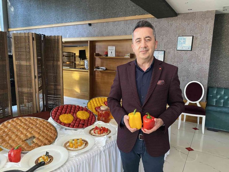 Kaliforniya biberden baklava da yaptıklarını kaydeden Şef Halil Gökmen, "En ilginci baklava oldu. Biberli baklava olur mu derseniz, biz yaptık ve çok güzel oldu. Kaliforniya biberden reçel, kaymaklı biber tatlısı, kurabiye, kek yaptık. Güney Amerika bölgesinde yetişen bir ürünü ülkemizde kendi damak tadımıza göre düzenlemeler yaptık. Küçük sarmalar, peynirli köfte tarzı çocuklarımızın seveceği biberli omlet yaptık" ifadesinde bulundu.