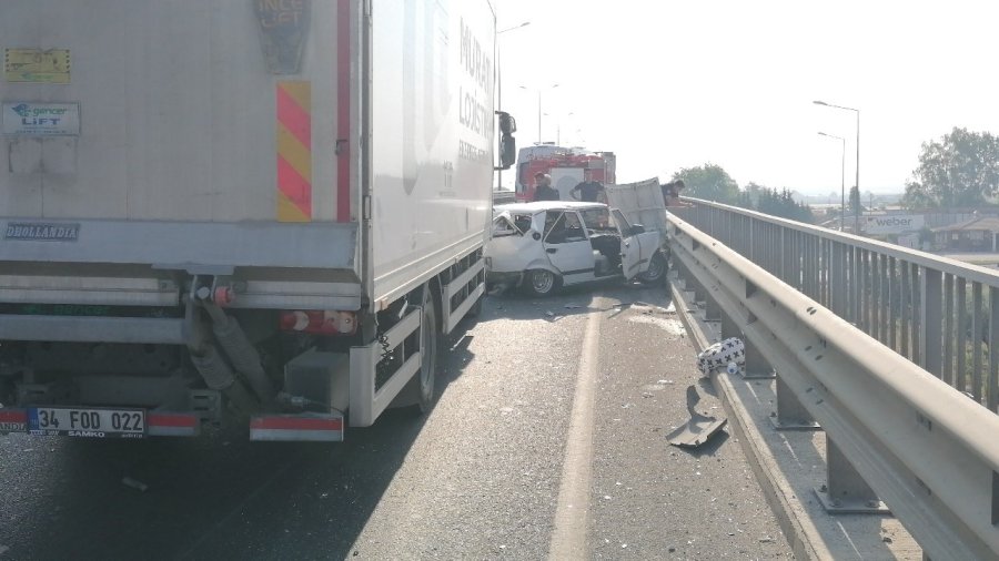 Kamyon, Çarpıp Sürüklediği Otomobili Bariyerlerle Arasına Sıkıştırdı: 4 Yaralı