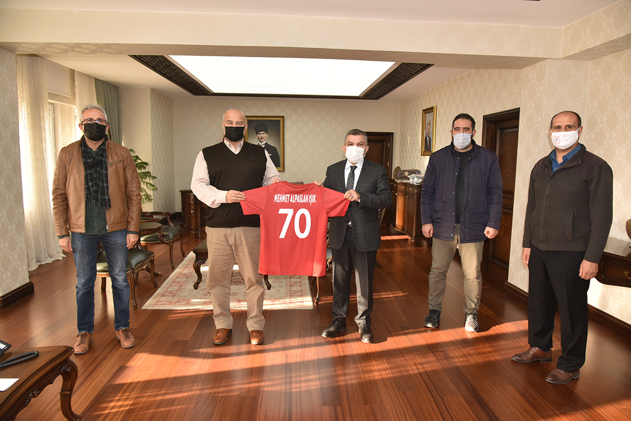 Kuruluşunun 28’inci yılı kutlamaları kapsamında Vali Mehmet Alpaslan Işık’ı ziyaret eden Karaman Amatör Spor Kulüpleri Federasyonu (ASKF) başkanı Yaşar Çalışkan ve yönetim kurulu üyeleri, pandemi süreci ve ilimizdeki amatör sporları hakkında bilgiler vererek, üzerinde isminin yazılı olduğu Milli Takım Formasını Vali Işık’a hediye ettiler.