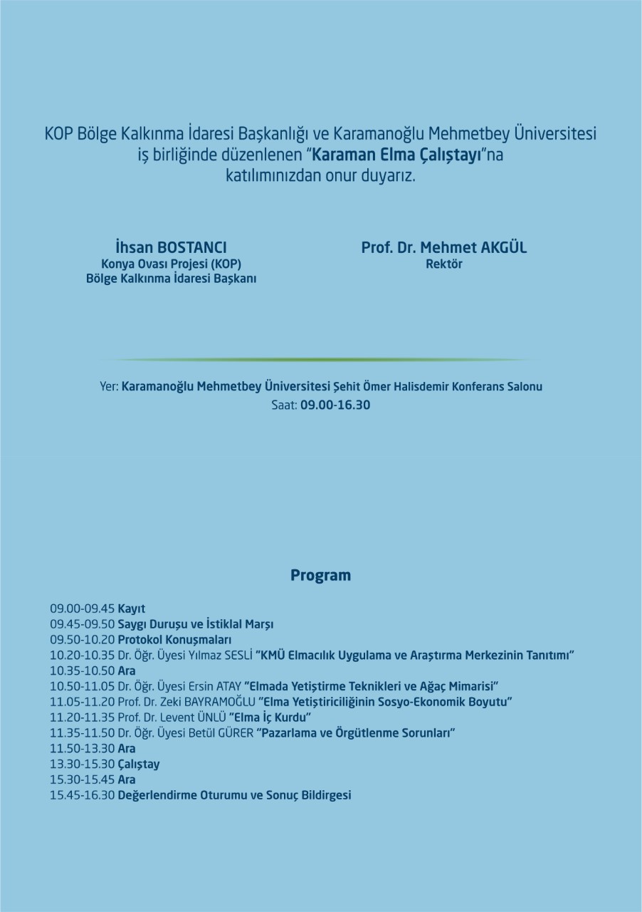 KMÜ Şehit Ömer Halisdemir Konferans Salonunda 15 Mart Cuma günü gerçekleştirilecek olan Karaman Elma Çalıştayı saat 9’da başlayacak.