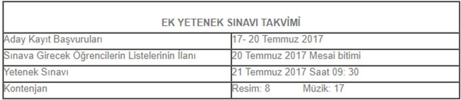 Karaman Güzel Sanatla Lisesi tarafından Temmuz 2017 de yapılan Yetenek Sınavları sonucunda; Resim ve Müzik alanlarında boş kalan kontenjanlar için ek yetenek sınavı yapılacak.
