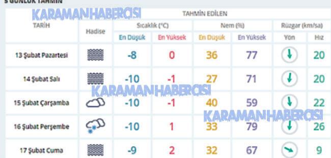 Karaman genelinde buzlanma ve don olayının beklendiği bildirildi.