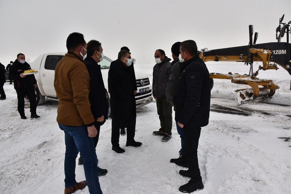 Vali Mehmet Alpaslan Işık, Karaman-Mut yolu üzerindeki Seyithasan köyünü Ağaçyurdu köyüne bağlayan bölgeyi ziyaret ederek İl Özel İdaresine bağlı karla mücadele ekiplerinin çalışmalarını yerinde takip etti.
