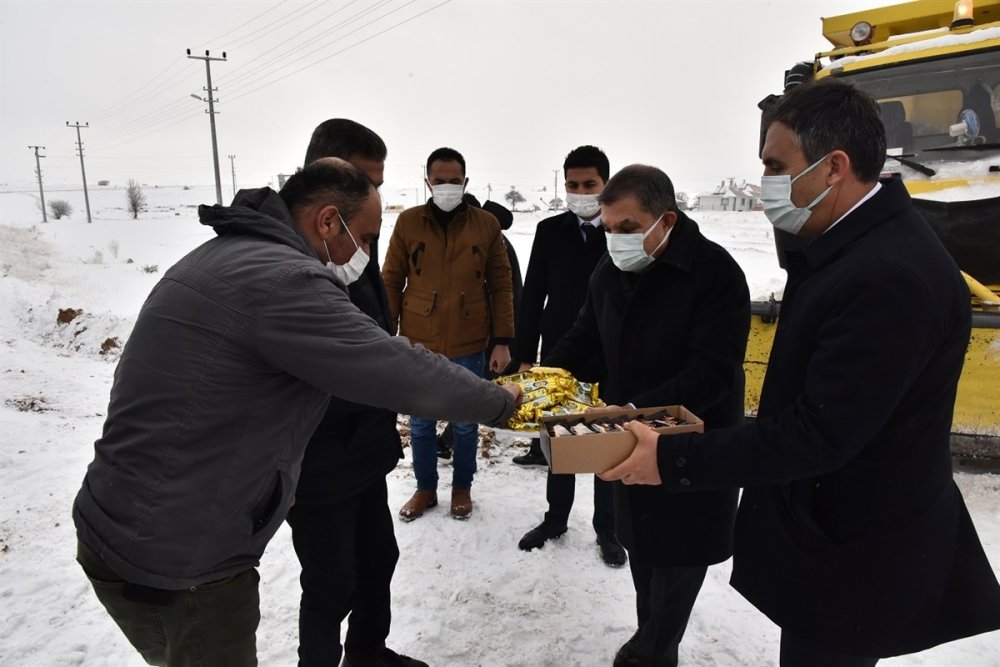 Soğuk hava şartlarına rağmen çalışmalarını yoğun bir şekilde sürdüren personelle bir süre sohbet ederek ikramlarda bulunan Vali Işık, 7/24 saat esasına göre çalışmalarını yürüten karla mücadele ekiplerine teşekkür ederek çalışmalarında kolaylıklar diledi.