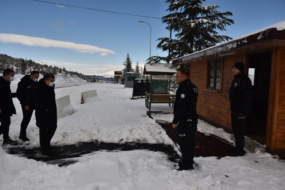 Vali Işık bölgedeki incelemelerinin ardından Karaman-Mut yolu üzerindeki polis noktasını ziyaret ederek alınan tedbirleri yerinde inceledi.