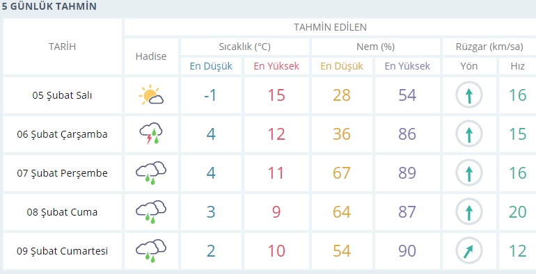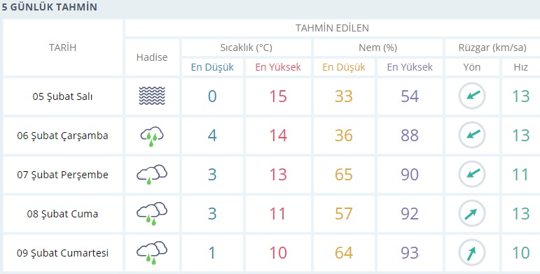 Meteoroloji tarafından yapılan son değerlendirmeye göre;Parçalı ve az bulutlu, sabah ve gece saatlerinde yer yer puslu geçeceği tahmin ediliyor.