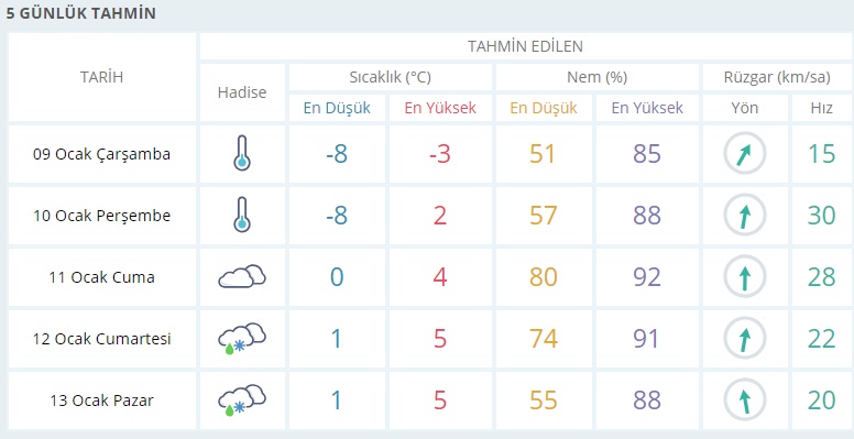 Meteoroloji Genel Müdürlüğü 8. Bölge Müdürlüğü tarafından Yapılan Açıklamaya Göre;