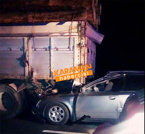 Alınan bilgilere göre, 33 U 5747 plakalı otomobil ile seyir halindeki Ali Uysal, Silifke’ye doğru gitmekte olan Mehmet Köse idaresindeki 38 GV 621 plakalı tomruk yüklü kamyona arkadan çarptı.
