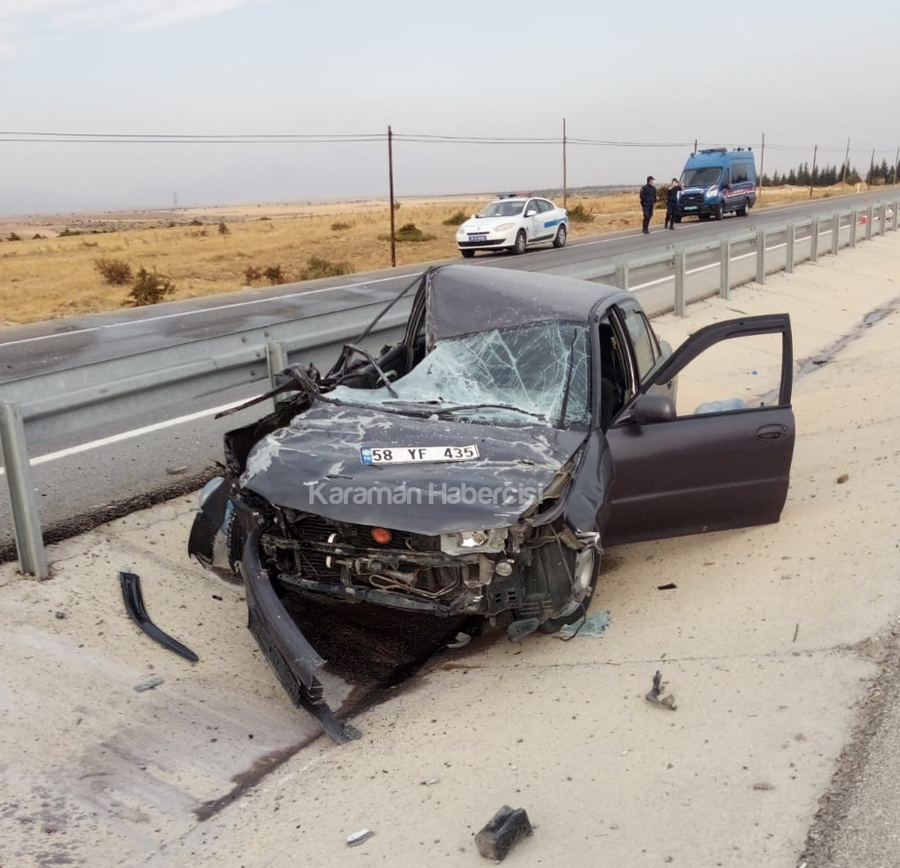 Karaman Mut yolu yaklaşık 10.km meydana gelen trafik kazasında, sürücünün hakimiyetini kaybettiği 58 YF 435 plakalı otomobil bariyerlere çarparak durabildi.