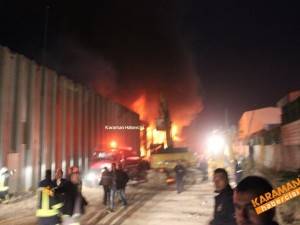 Karaman OSB'de bulunan Anı Plast fabrikasının ilk bilgilere göre depo kısmında başladığı öğrenilen yangın gittikçe büyüdü.