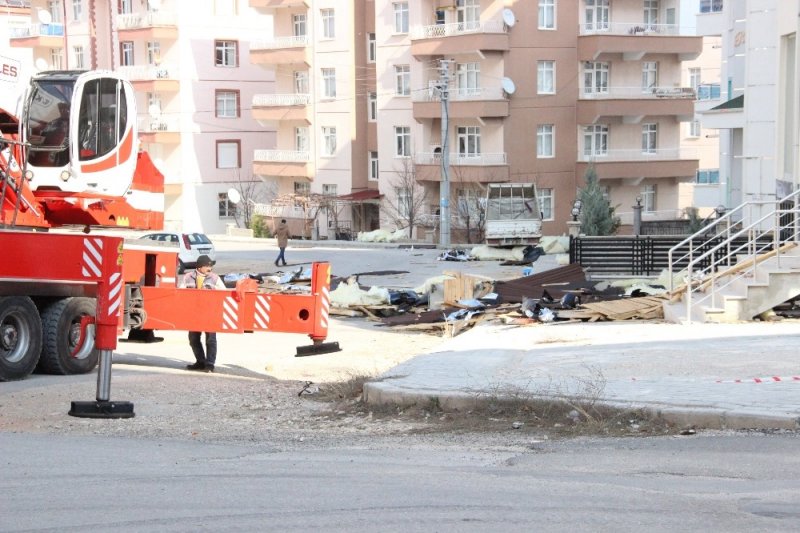 Karaman'da etkili olan şiddetli rüzgar nedeniyle iki evin çatısı uçarken, çatılardan birinin büyük bir bölümü park halindeki otomobilin üzerine düştü, bir kısmı da karşı binadaki dairenin penceresine saplandı.