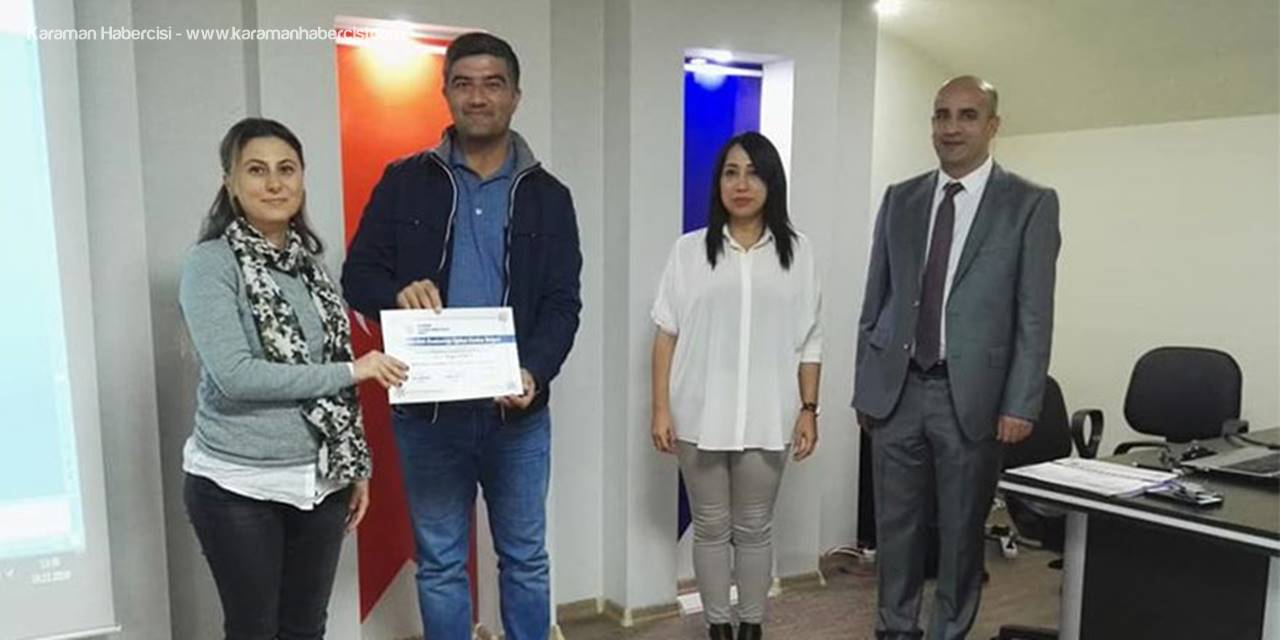 Eğitim sonunda katılımcılara Konkordato Komiserliği Eğitimi Katılım Belgesi Karaman SMMM Oda Başkanı Umut Aydın tarafından verildi.