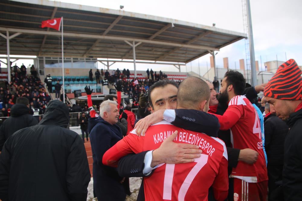 Zorlu mücadelenin ardından Karaman Belediye Başkanı Savaş Kalaycı, futbolcuları ve teknik heyeti tebrik ederken, alınan beraberlikle puanını 35’e yükselten temsilcimiz, lider Kestel Spor ile aradaki puan farkını da 1’e düşürmüş oldu.