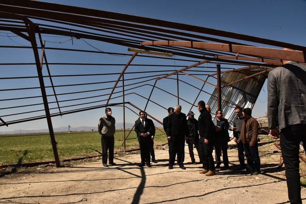 Karaman Valisi Mehmet Alpaslan Işık, kuvvetli fırtına nedeniyle ahırı hasar gören vatandaşı ziyaret etti.