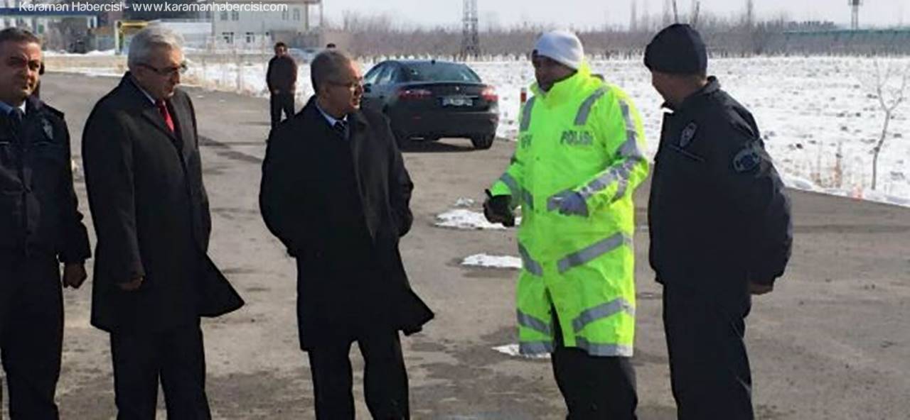 Vali Süleyman Tapsız, Karaman – Konya yolu üzerindeki polis uygulama noktasını ziyaret ederek çalışmaları yerinde denetledi.