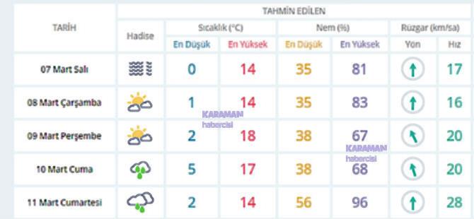 Karaman ve Çevre İller İçin Hava Durumu