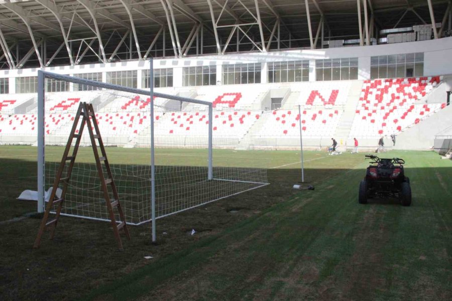 Karaman'da, UEFA standartlarına uygun olarak 5 yıl önce yapımına başlanan 15 bin kişi kapasiteli yeni şehir stadyumunda kale direkleri takılırken, saha çizgileri de çizildi.