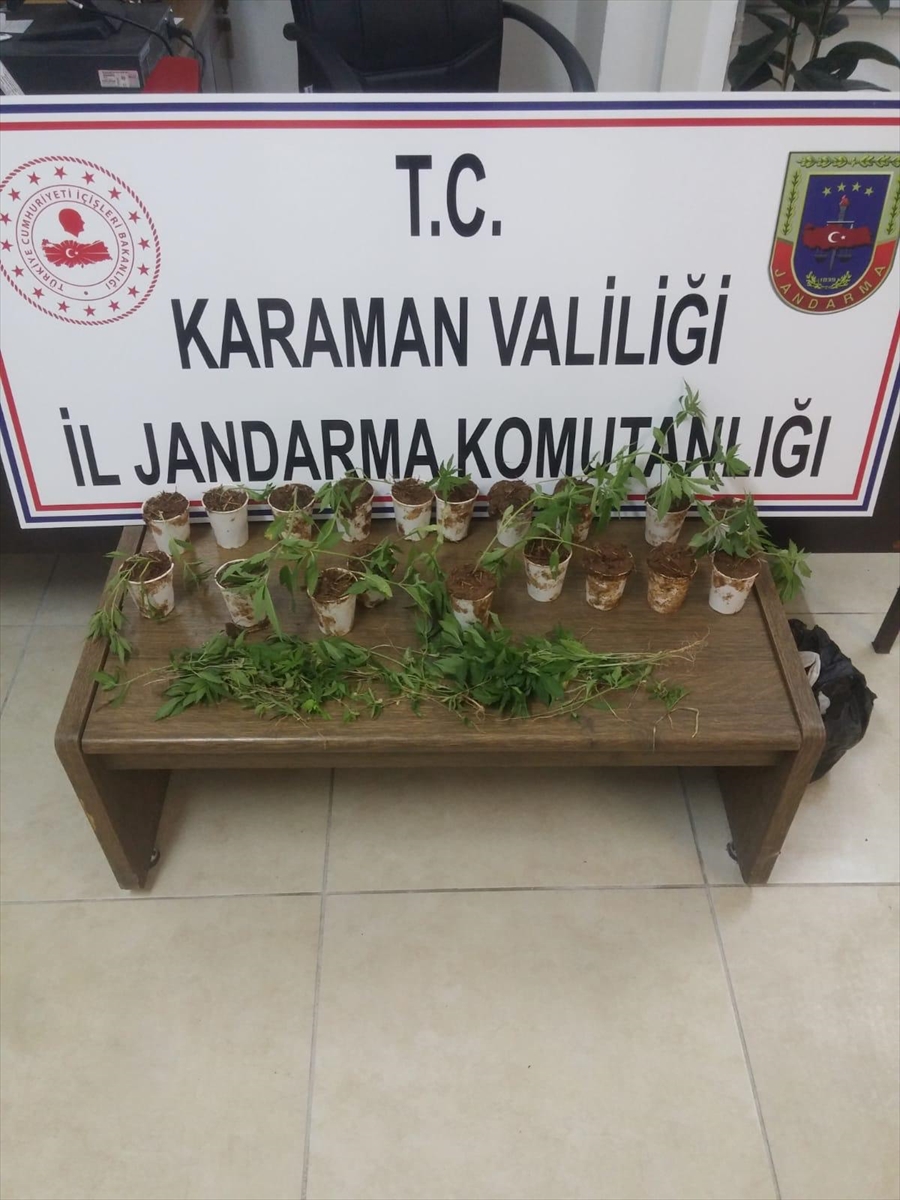Karaman'da düzenlenen operasyonda 125 kök kenevir bitkisi ele geçirildi.
