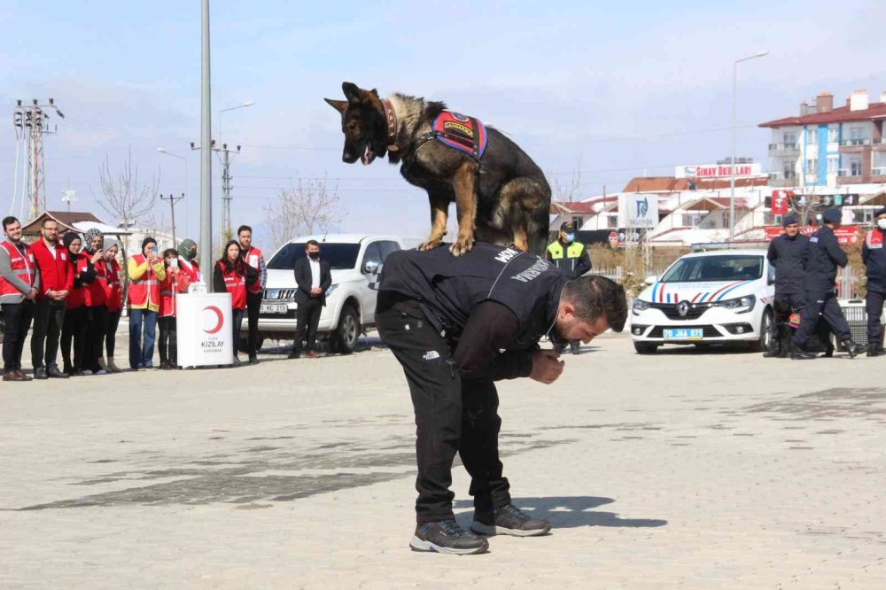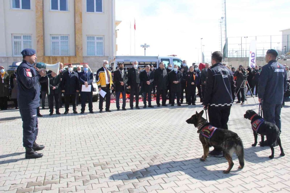 Tatbikat, İl Jandarma Komutanlığına ait arama kurtarma köpeklerinin yaptığı gösteri ile sona erdi.