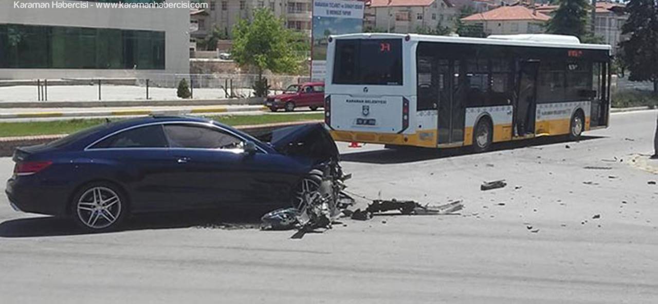 Karaman’da Araç Belediye Otobüsüne Çarptı