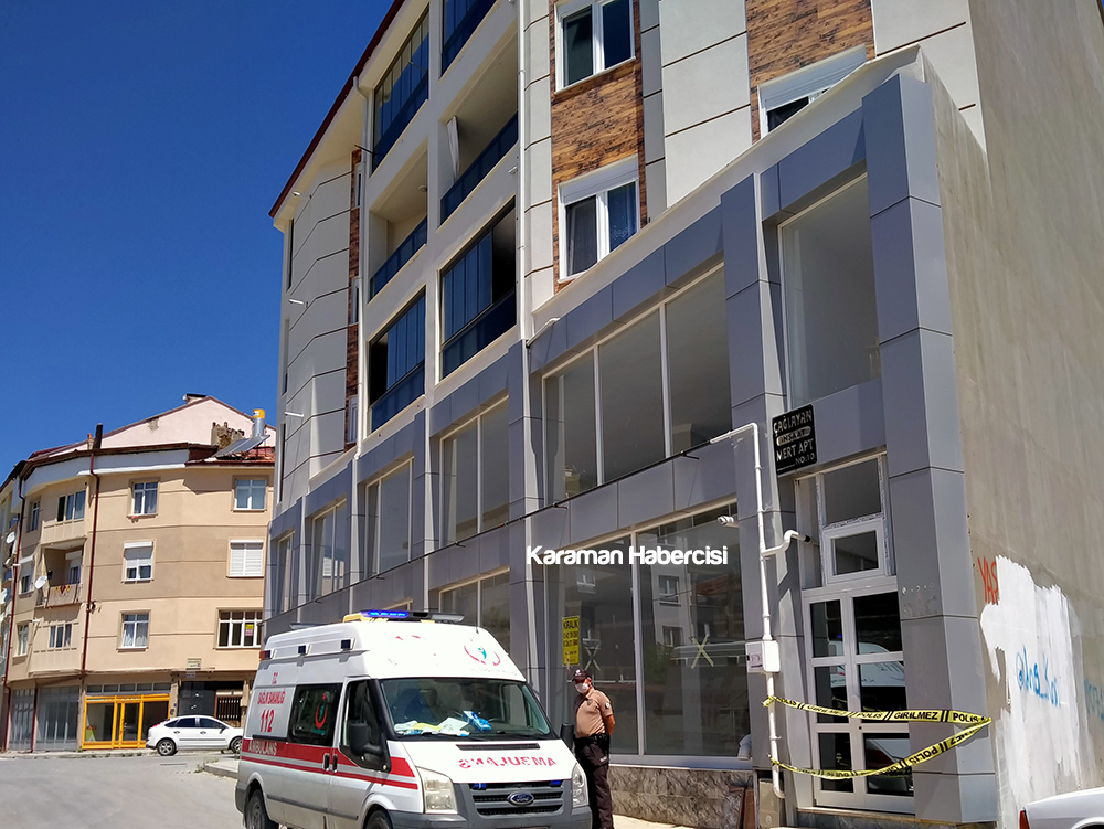 Karaman Mansurdede Mahallesi 105 nolu sokakta bulunan iki katlı binaya gelen sağlık ekipleri koruyucu elbiseler ile binaya giriş yaptı.