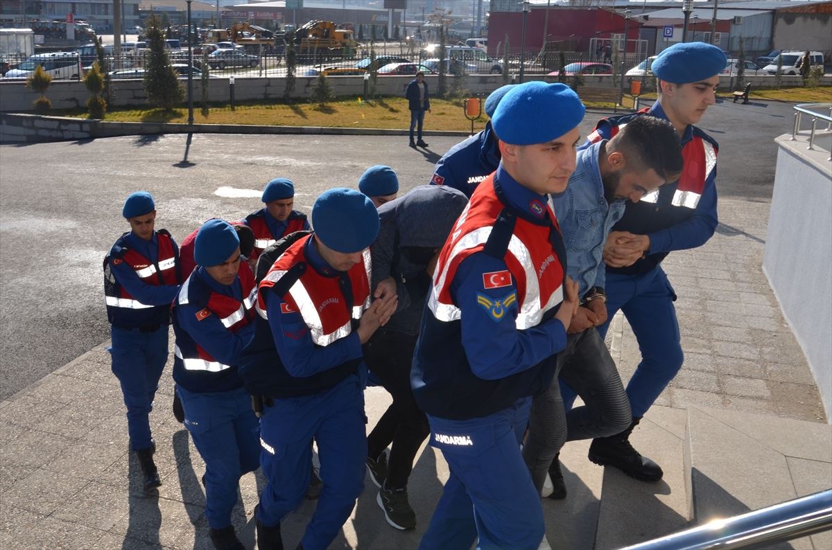 Gözaltına alınan şüpheliler, Karaman İl Jandarma Komutanlığına getirildi.