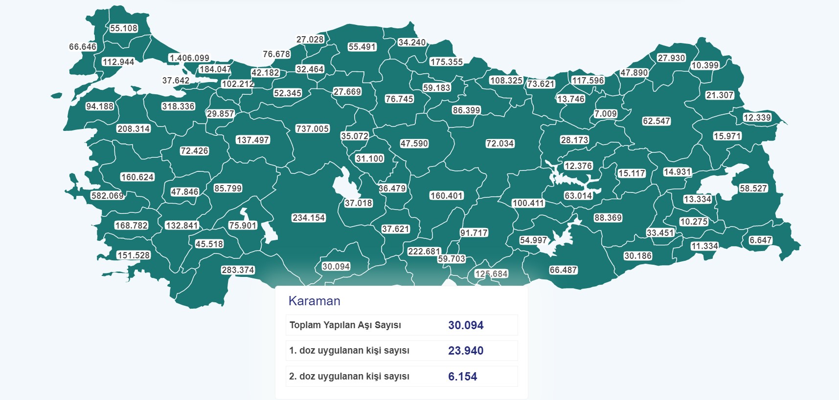 Karaman'da korona virüs vakalarına ilişkin rakamlar ve covid-19 aşısında son veriler paylaşıldı.