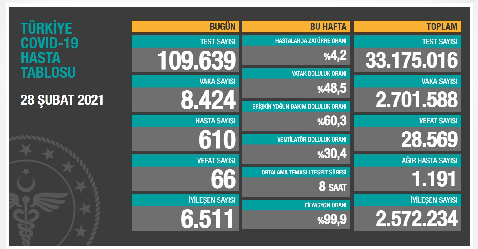 Türkiye genelinde Toplam Yapılan Aşı Sayısı: 8.752.415, 1.Doz Uygulanan Kişi Sayısı: 6.964.868,