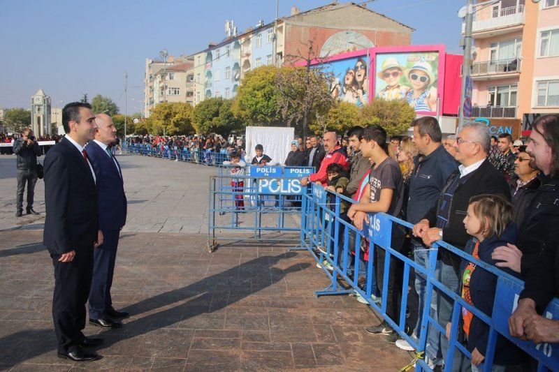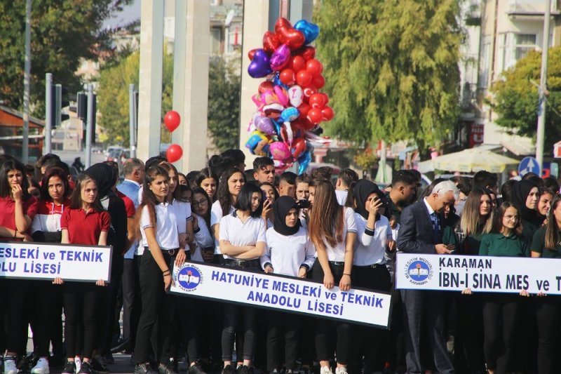 Aktekke 15 Temmuz Demokrasi Meydanı'ndaki kutlamalara vatandaşlar büyük ilgi gösterdi. Program, Karaman Valisi Fahri Meral ve Karaman Belediye Başkanı Savaş Kalaycı'nın öğrencilerin ve vatandaşların bayramını kutlamasıyla başladı. Saygı duruşunda bulunulması ve İstiklal Marşı'nın okunmasının ardından bir konuşma yapan Karaman Valisi Fahri Meral, "19 Mayıs 1919'da Gazi Mustafa Kemal Atatürk'ün Samsun'a çıkarak başlattığı Milli Mücadele Türk Milleti'nin inanç ve azmiyle başarıyla sonuçlanmış, 29 Ekim 1923 tarihinde Cumhuriyetin ilanıyla Türkiye Cumhuriyeti Devleti kurulmuştur. Atatürk'ün Türk Milletinin karakterine ve adetlerine en uygun idare Cumhuriyet idaresidir diyerek ilan ettiği Cumhuriyet, Türk Milletine bırakılmış en büyük miras ve vazgeçilmez bir değerdir. Türkiye Cumhuriyeti Milletimizin ortak eseridir. Bu nedenle ülkemiz, aziz milletimiz için olduğu kadar, dünyanın mazlum ve mağdurları için de bir umut ışığı olarak doğmuş ve bu görevi artırarak devam ettirmektedir. Cumhuriyet, Türkiye'nin muasır ve demokratik bir ülke olarak varlığını ve gelişimini sürdürmesinin en önemli güvencesidir. Bu nedenle Cumhuriyetin tüm değerleriyle gelecek kuşaklara aktarılması ve sonsuza kadar yaşatılması ortak sorumluluğumuzdur. Aziz milletimiz, bu bilinç doğrultusunda, kendisini muasır dünyayla buluşturan Cumhuriyeti korumaya ve yaşatmaya kararlıdır. Cumhuriyetimiz, kardeşlik üzerine inşa edilmiş ve halkı bütün farklılıklarıyla kucaklamaktadır. Milli birlik ve beraberliğimizi koruduğumuz sürece Türkiye Cumhuriyeti'nin üzerinde oynanan oyunları bertaraf etmiş oluruz. Bugün gelinen noktada, halkımızın her kesiminin birlik ve bütünlük içinde gösterdiği gayretlerin, demokratik devlet anlayışımızın bir ürünü olarak gelişmemize yansıdığını unutmamalıyız. Devlet ve millet olarak elde ettiğimiz her başarıda, bir zamanlar kağnıları başında, yırtık çarıkları ile düşmana karşı savaşan askerlerimize silah ve cephane götüren isimsiz kahramanların, bu vatan uğruna çarpışarak can veren şehitlerimizin ve gazilerimizin kanları olduğunu unutmadan çalışmaya devam edeceğiz. Bu duygularla Cumhuriyetimizin kuruluşunun 96. yıl dönümünü kutluyor, başta Gazi Mustafa Kemal Atatürk ve İstiklal Savaşı kahramanları olmak üzere bütün şehitlerimizi, gazilerimizi rahmetle şükranla anıyorum" dedi.